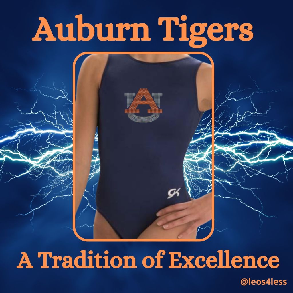This stunning Auburn Tiger girls’ gymnastics leotard is a real attention-grabber!